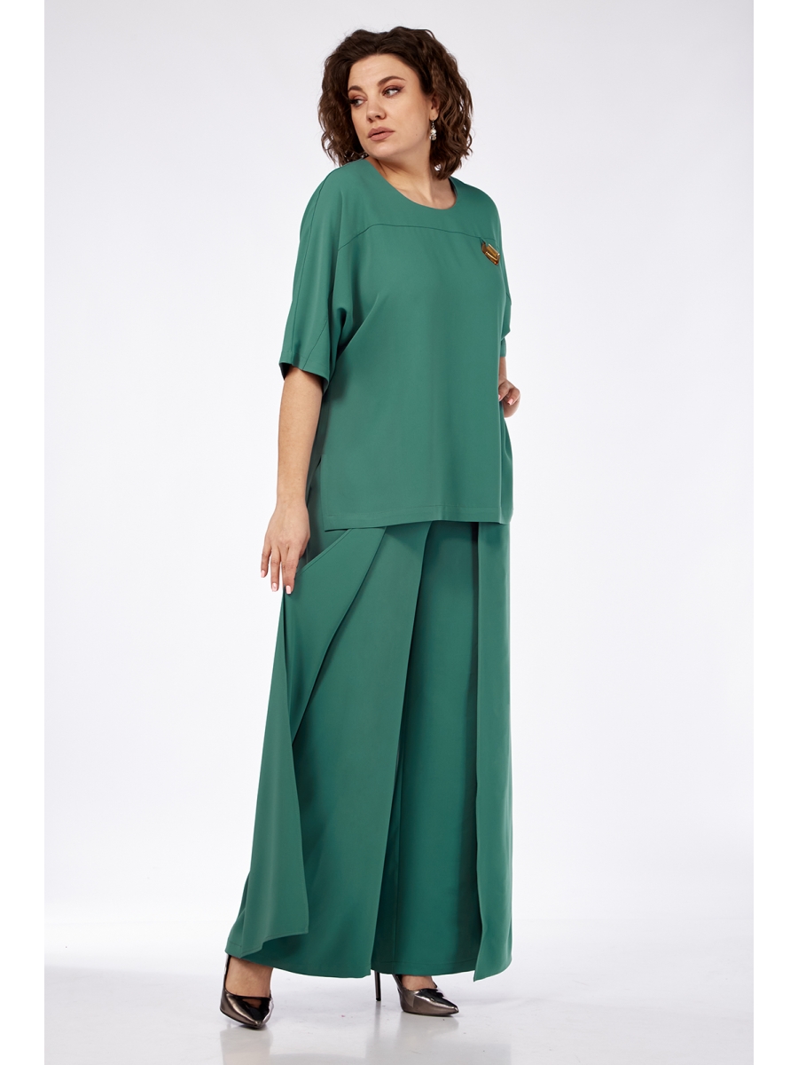 Костюм женский брючный 2-х предметный, состоит из блузы и брюк, изготовлен из костюмно- плательной ткани.
