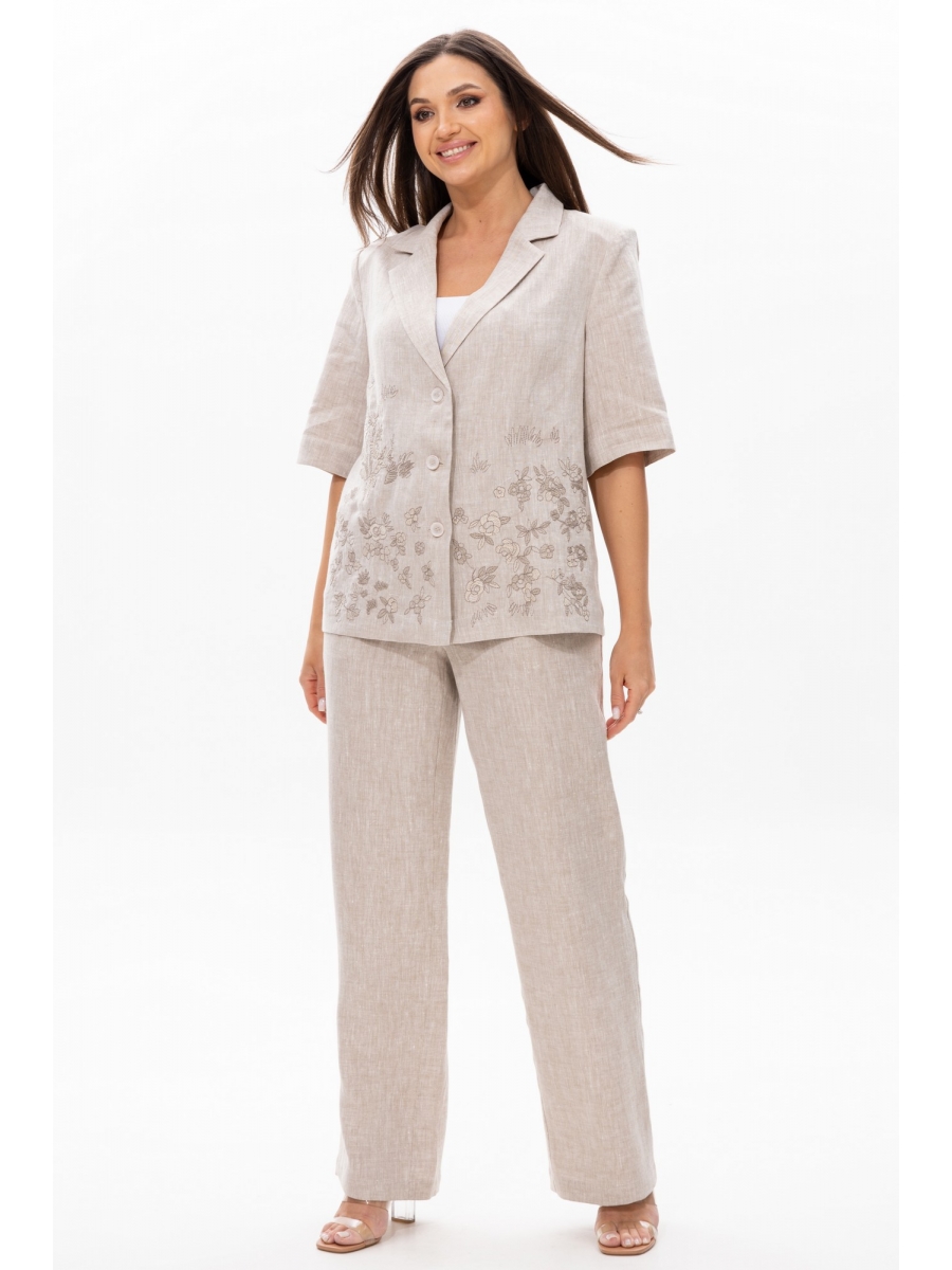 Шикарный льняной двухпредметный костюм Ma Cherie, состоящий из жакета и брюк.