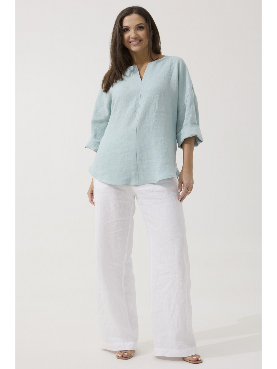 Льняной двухпредметный костюм Ma Cherie, состоящий из блузы и брюк.