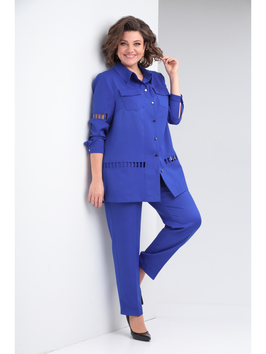 Женский брючный комплект-двойка. Выполнен из стрейчевой плательно-костюмной ткани «барби». Свободный, элегантный крой и яркие цвета придают костюму выразительность и универсальность.