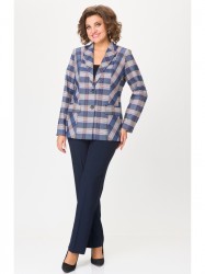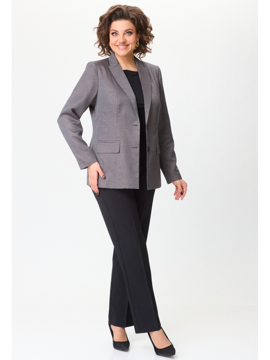 Жакет удлиненный, полуприлегающего силуэта с центральной бортовой застежкой на пуговицы до линии перегиба лацкана. Спереди рельефные швы от плечевого шва, отрезной бочок и карман с клапаном. Спинка с рельефами от плечевого шва. Рукав втачной, двухшовный. Воротник пиджачного типа. Жакет на подкладке.