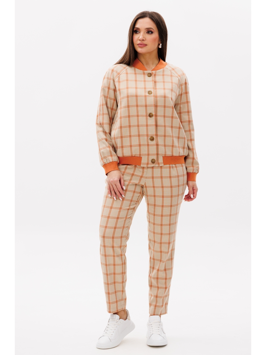 Костюм из такой ткани смотрится выигрышно сам по себе и не требует дополнительных акцентов. Для активных и современных девушек мы предлагаем в весеннем сезоне не стандартный вариант брючного костюма, а смелое сочетание трендовой ткани и спортивного стиля: классические брюки + спортивный бомбер.
