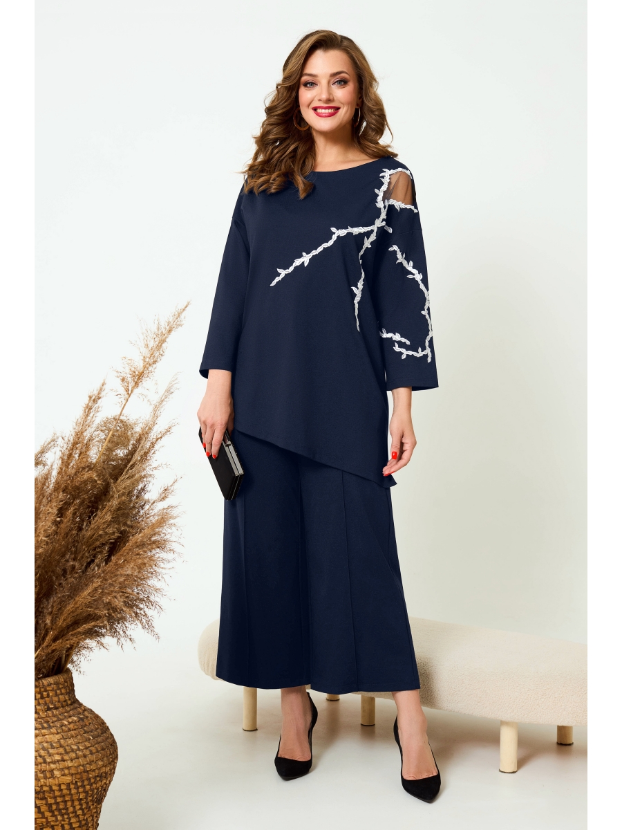 Брюки выполнены из высококачественной трикотажной ткани с добавлением вискозы, на поясе, с застежкой на потайную молнию. Брюки по переду с застроченным кантом. Комплект удобный и практичный, отлично подойдет для ежедневной носки и торжественного мероприятия.