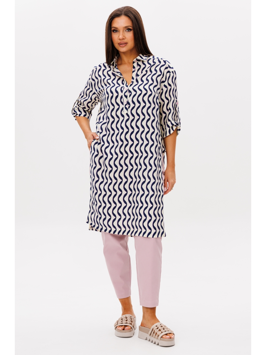 Комплект состоит из удлинённой рубашки-туники и брюк.