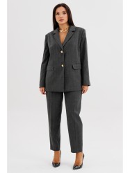 Жакет свободного расширенного силуэта, втачного покроя с центральной застёжкой и классическим английским воротником. Полочка с отрезным бочком, нагрудной вытачкой и прорезным карманом с клапаном. Спинка с центральным швом, шлицей и отрезным бочком. Рукав двухшовный с отлетной шлицей.