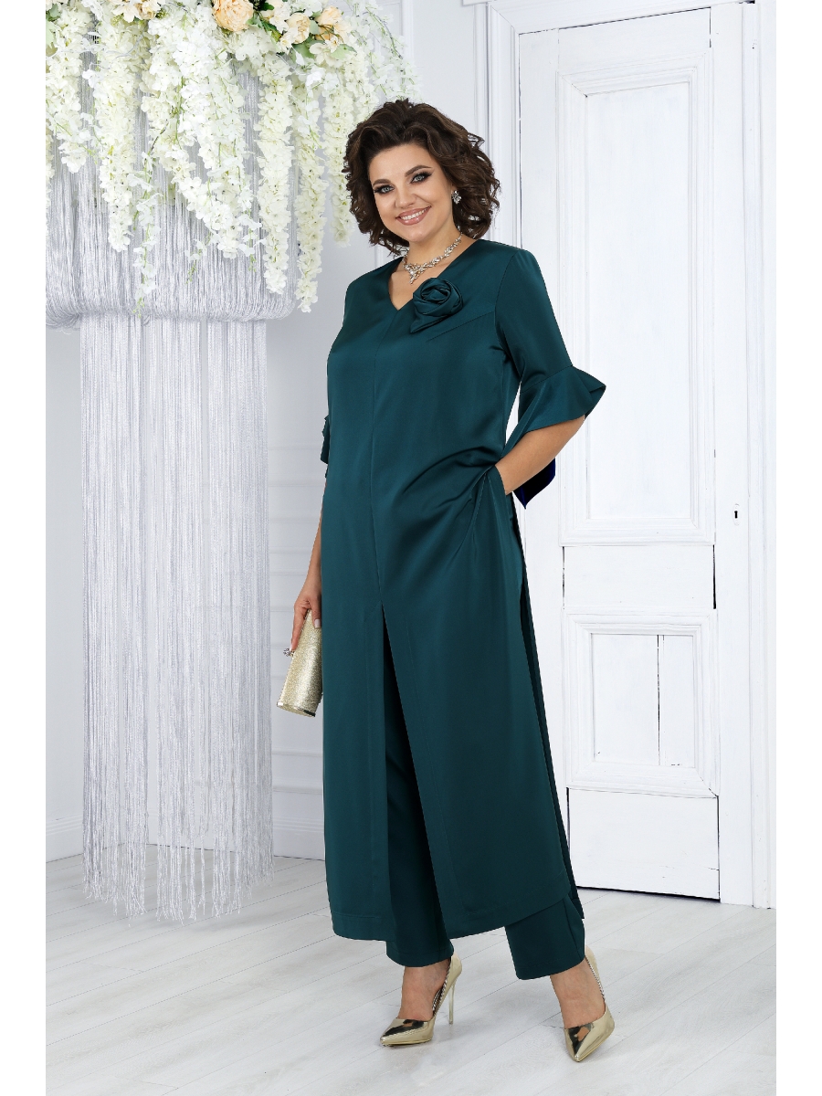 Представляем вашему вниманию вечерний брючный костюм, созданный с особым вниманием к стилю и комфорту женщин больших размеров. Этот изысканный комплект выполнен из высококачественного сатина, придавая вашему образу нежность и элегантность. Длинная туника этого костюма не только подчеркивает его изысканный характер, но и служит важным элементом создания правильного силуэта для женщин с великолепными формами. Ее линии и длина прекрасно балансируют фигуру, придавая ей гармоничность и элегантность.