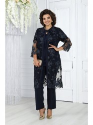 Комплект брючный 3-х предметный, состоящий из кардигана, выполненного из гипюра, джемпера, выполненного из трикотажного полотна «масло» и брюк, выполненных из костюмно-плательной ткани.