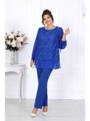 Этот нарядный костюм для полных женщин станет вашим универсальным решением — он уместен и на праздничном вечере, и в офисной обстановке. Модель гармонично сочетает в себе торжественность и лаконичность, поэтому одинаково эффектно смотрится как с лодочками и клатчем, так и с более сдержанными аксессуарами.
