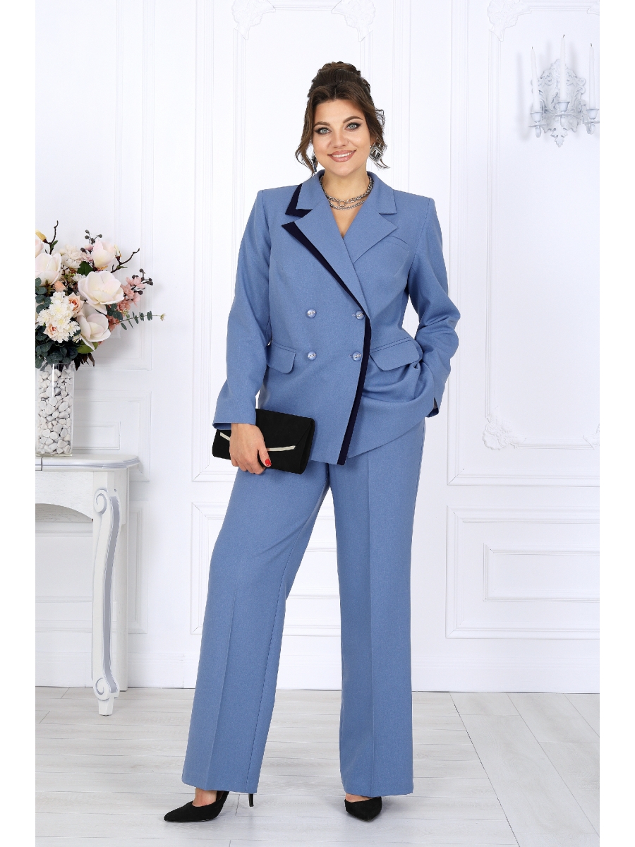 Элегантный брючный костюм двойка — идеальный выбор для деловых встреч, офисных будней, торжеств и вечерних выходов. Костюм подходит для женщин с формами: он формирует правильный силуэт, подчеркивая достоинства и создавая стройный образ. Двубортная застежка со смещением и декоративной вставкой создаёт эффект многослойности, придавая образу стильный акцент. Универсальная модель — одинаково уместна как на работе, так и на торжественном мероприятии.