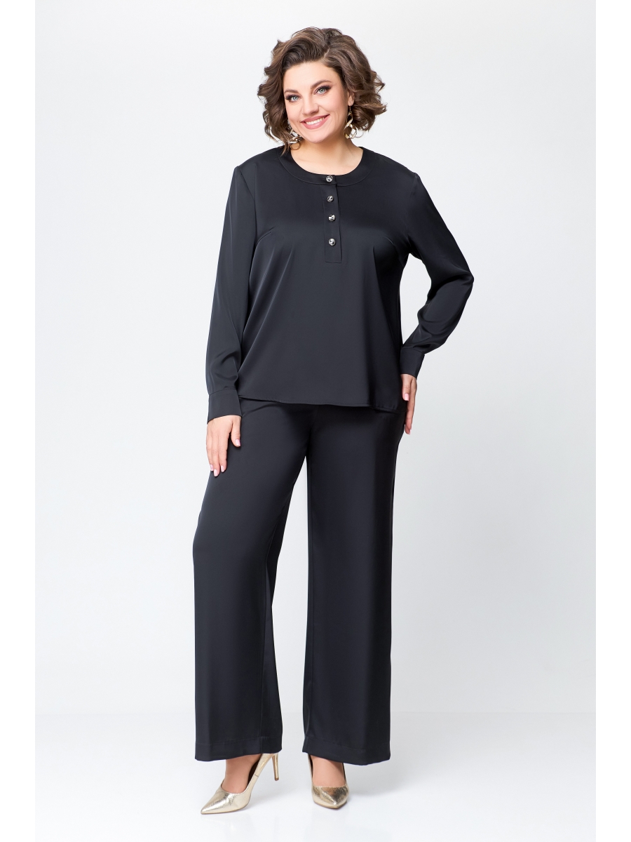 Костюм женский, состоящий из брюк и блузы. Выполнен из плотного, струящегося сатина турецкого производства.