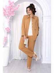 Комплект брючный 3-х предметный, состоящий из жакета, брюк и джемпера. Жакет и брюки выполнены из костюмно-плательной ткани «лен-вишер», джемпер выполненный из трикотажного полотна
