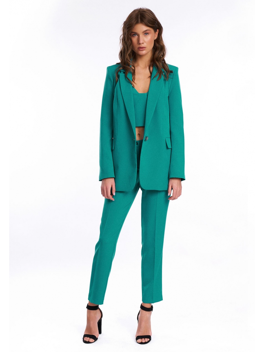 Универсальный женский жакет на подкладке прямого силуэта. Перед с центральной застежкой на одну пуговицу, с карманами и с клапанами в шве. Воротник стояче-отложной втачной с отворотом лацкана. Рукав двухшовный, втачной.