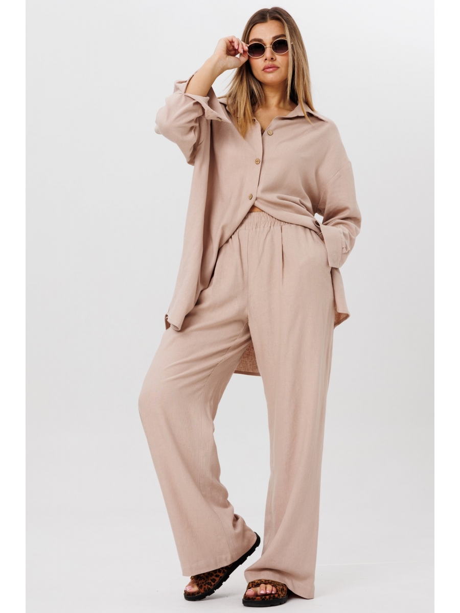 Стильный льняной oversize-костюм AMIE в свободном стиле, состоящий из рубашки и брюк.