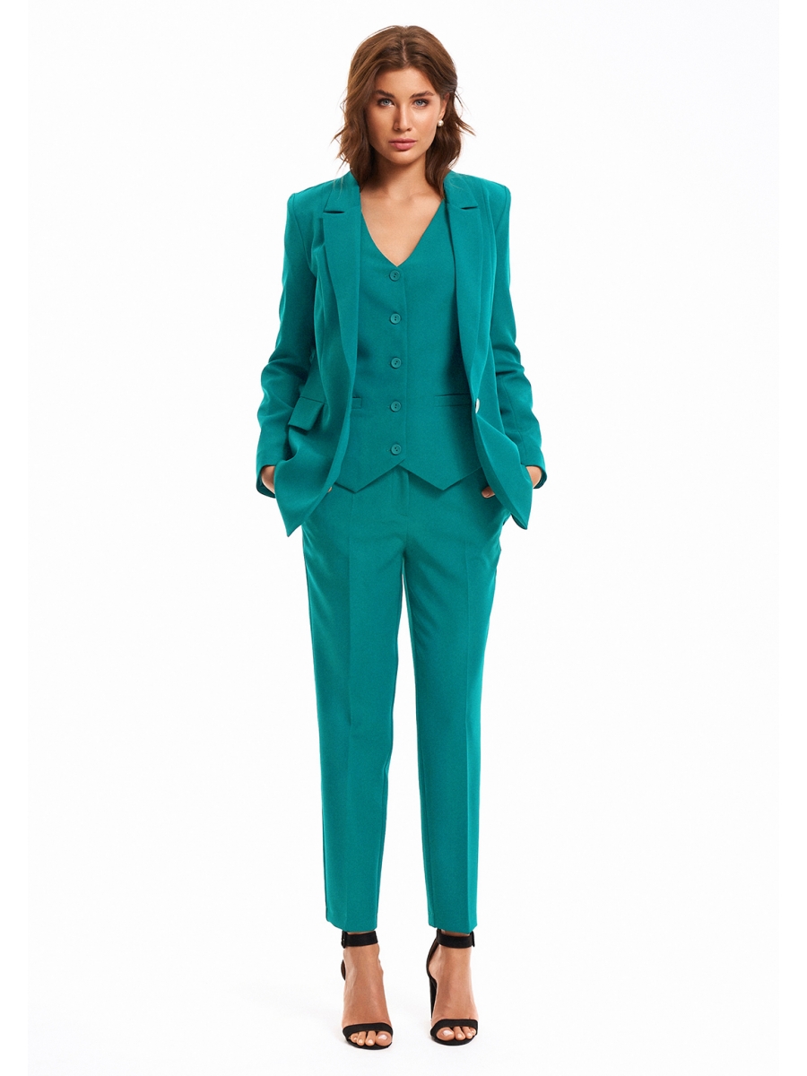 Универсальный женский жакет на подкладке прямого силуэта. Перед с центральной застежкой на одну пуговицу, с карманами и с клапанами в шве. Воротник стояче-отложной втачной с отворотом лацкана. Рукав двухшовный, втачной.