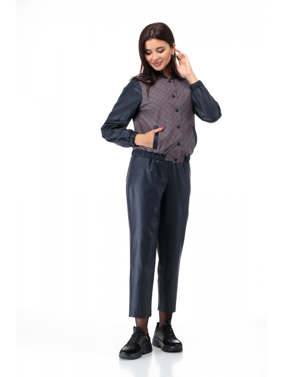 Брюки - слоучи выполнены из ткани с покрытием под кожу. Функциональные карманы по переду и накладные карманы по задним половинкам. В уголках