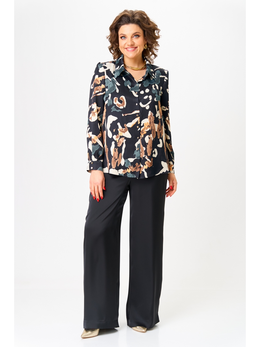 Рубашка из атласа, полуприлегающего силуэта с центральной застежкой на декоративные пуговицы, воротник рубашечный со стойкой. Рукава втачные, по низу с манжетом, застежка на петли пуговицы.
