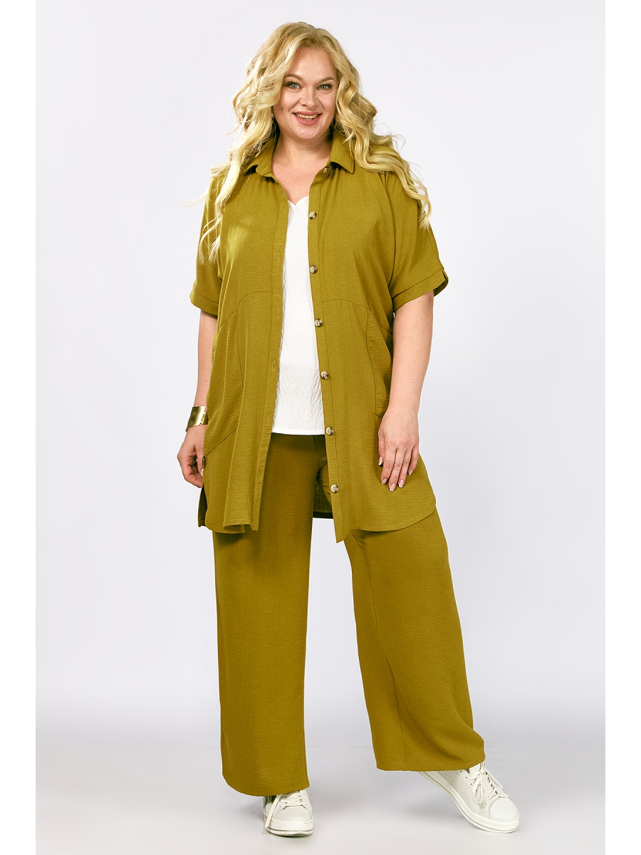 Откройте для себя стильный женский брючный комплект из рубашки, блузы и брюк идеально подходящий для различных случаев. Костюмчик брендовый создан для женщин, ценящих комфорт и стиль. Штаны широкого кроя палаццо гармонично сочетаются с классической длинной рубашкой. Брюки частично на резинке с обработанным псевдо гульфиком, с карманами в боковых швах. Блуза с разноуровневым низом ,с разрезами ,со спущенным плечом и декоративной нашивкой. Рубашка с коротким рукавом, застежка планка на пе6тли и пуговицы. Спинка со средним швом. По боковым обработаны разрезы. На полочке настрочены накладные карманы. Красивый летний наряд прекрасно комбинируется, позволяя создать как повседневный, так и нарядный образ. Вечеринка или фотосессия — вы будете в центре внимания. Благодаря однотонному дизайну он выглядит аккуратно и стильно, придает уверенности каждой девушке независимо от случая - будь то корпоративное мероприятие или торжество. Легкий молодежный комплект тройка представлен также в больших размерах, чтобы подчеркнуть индивидуальность даме плюс сайз и девушек любителей оверсайз стиля и трендовых необычных образов.