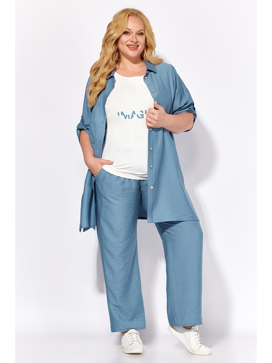 Комплект женский трехпредметный создан специально для самых шикарных модниц 2025 года! Этот комплект - идеальный выбор для женщин, которые ценят комфорт, качество и стиль. За счет идеального свободного кроя в стиле оверсайз, Вы подчеркнете все свои достоинства и скроете недостатки. Стильный и элегантный дизайн этого костюма, свежий цвет привлекут внимание окружающих. Легкие материалы и прекрасная воздухопроницаемость делают молодежный костюм идеальным для жаркого лета, теплой весны и осени и позволяют коже дышать. Комплект включает в себя: стильные широкие брюки с высокой посадкой на резинке, топ-футболку с печатью и коротким втачным рукавом, и рубашку удлиненного прямого кроя с прорезными карманами на полочке и разрезами по боковым швам. Оригинальная современная тройка подарит комфорт женщинам и девушкам всех возрастов и подойдет на любой случай, как для повседневной  жизни, так и на  торжество.