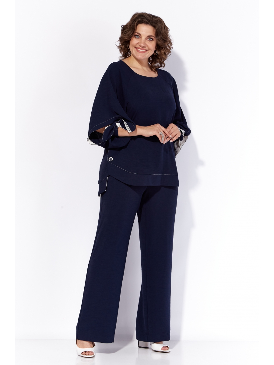 Туника свободного покроя с удлиненной спинкой. Широкий рукав-реглан с глубокой прорезью внизу завязывается манжетой. Разрезы в боковых швах насквозь застегиваются на пуговицы. Низ на широкой обтачке, низ рукава отстрочен гарусом.