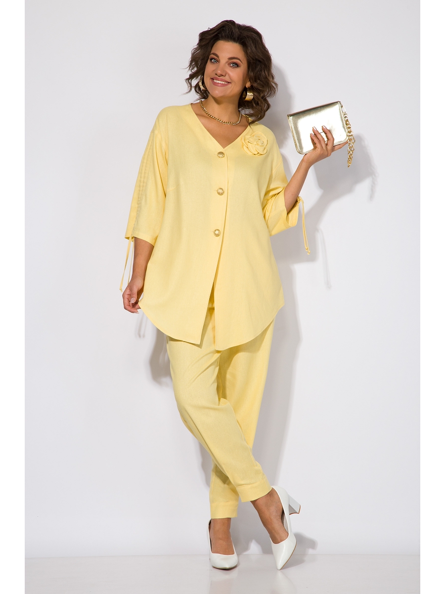 Эффектный летний костюм, из натурального льна с добавлением вискозы; состоит из свободной блузки и брюк.