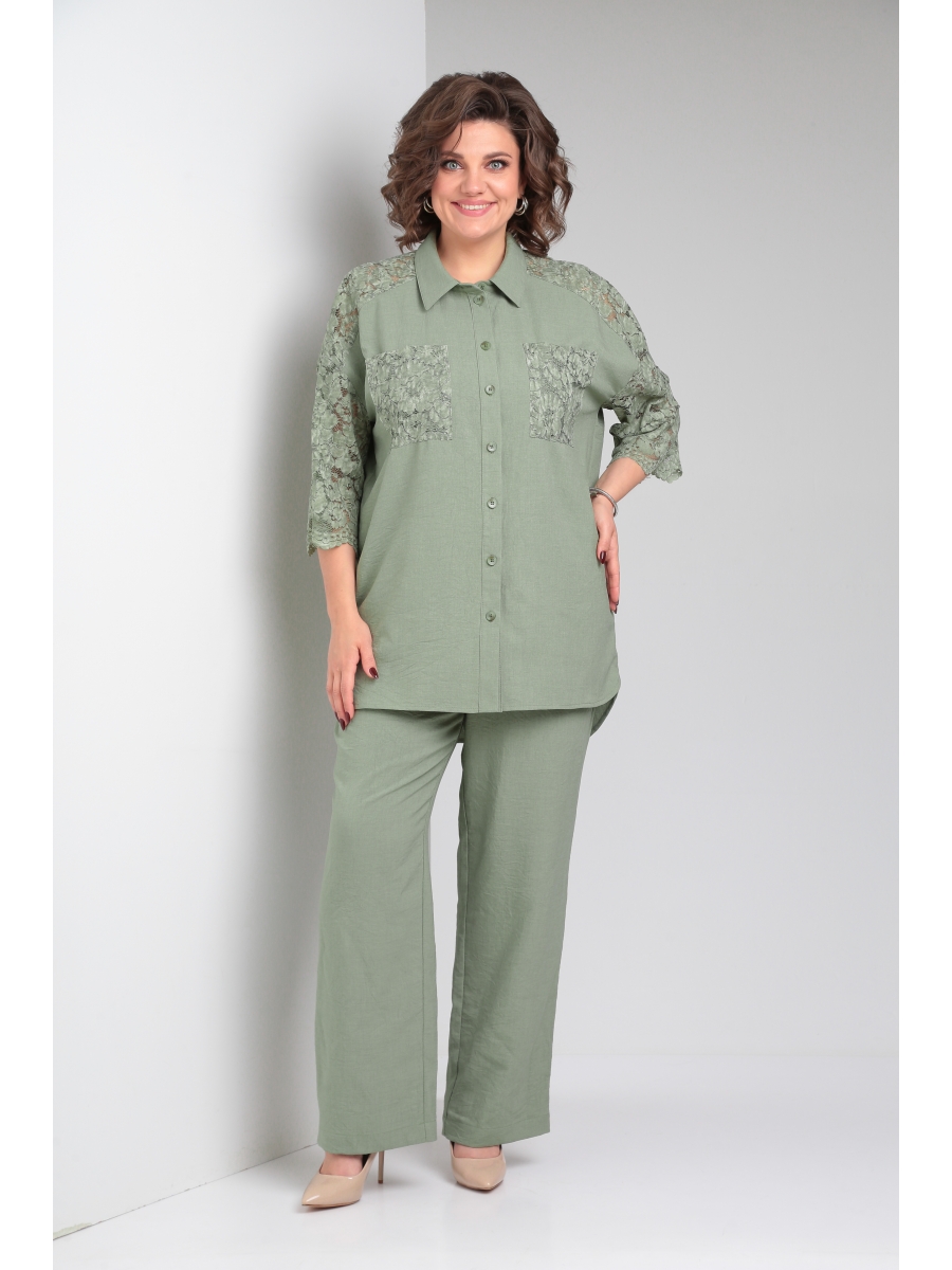 Стильный брючный льняной костюм состоит из блузки и брюк.