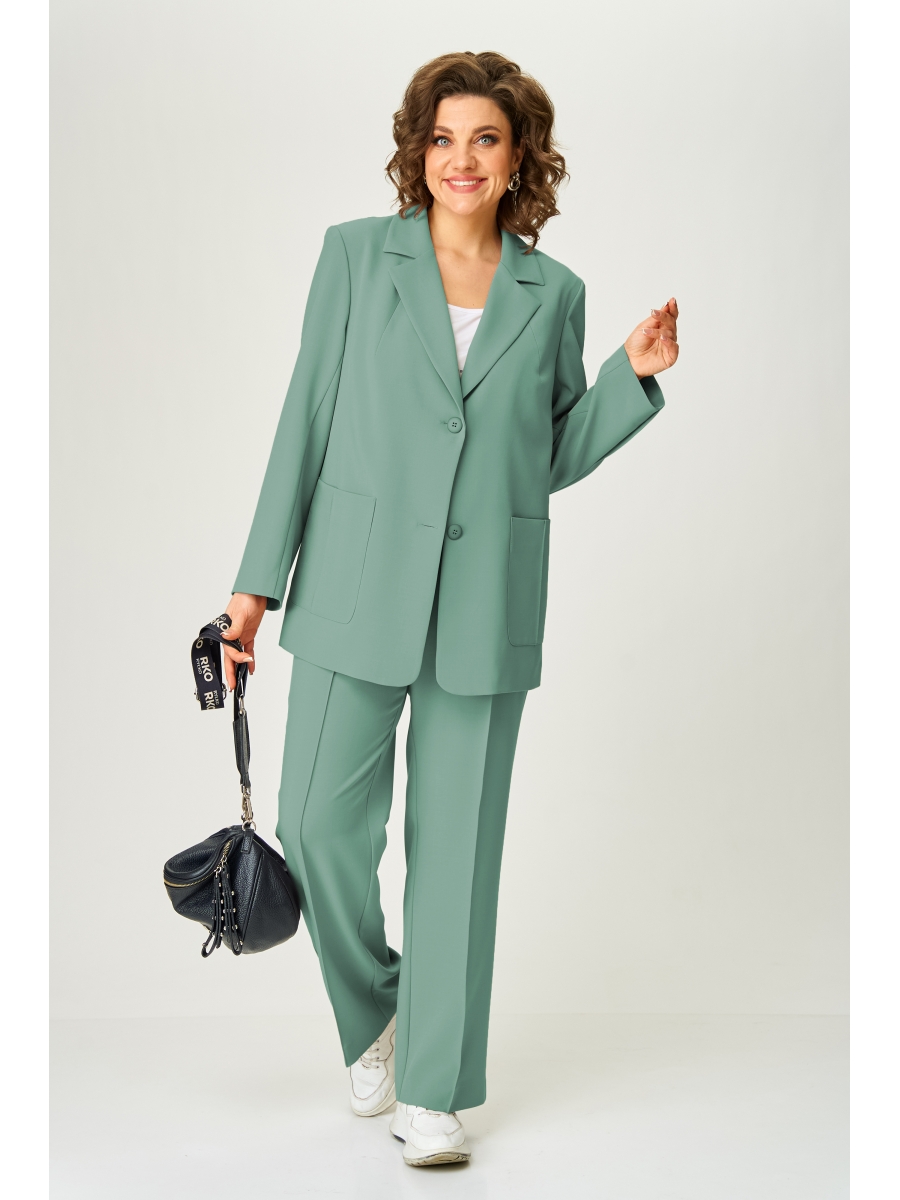 Жакет частично на подкладке. Силуэт прямой. Покрой рукава втачной двушовный, шлица в локтевом шве. Воротник пиджачный. По переду большие накладные карманы с тонким застроченым кантом. Застежка центральная на 2 петли и пуговицы. На спинке дакета выполнен декоративный элемент в виде кармана с листочкой и подреза.