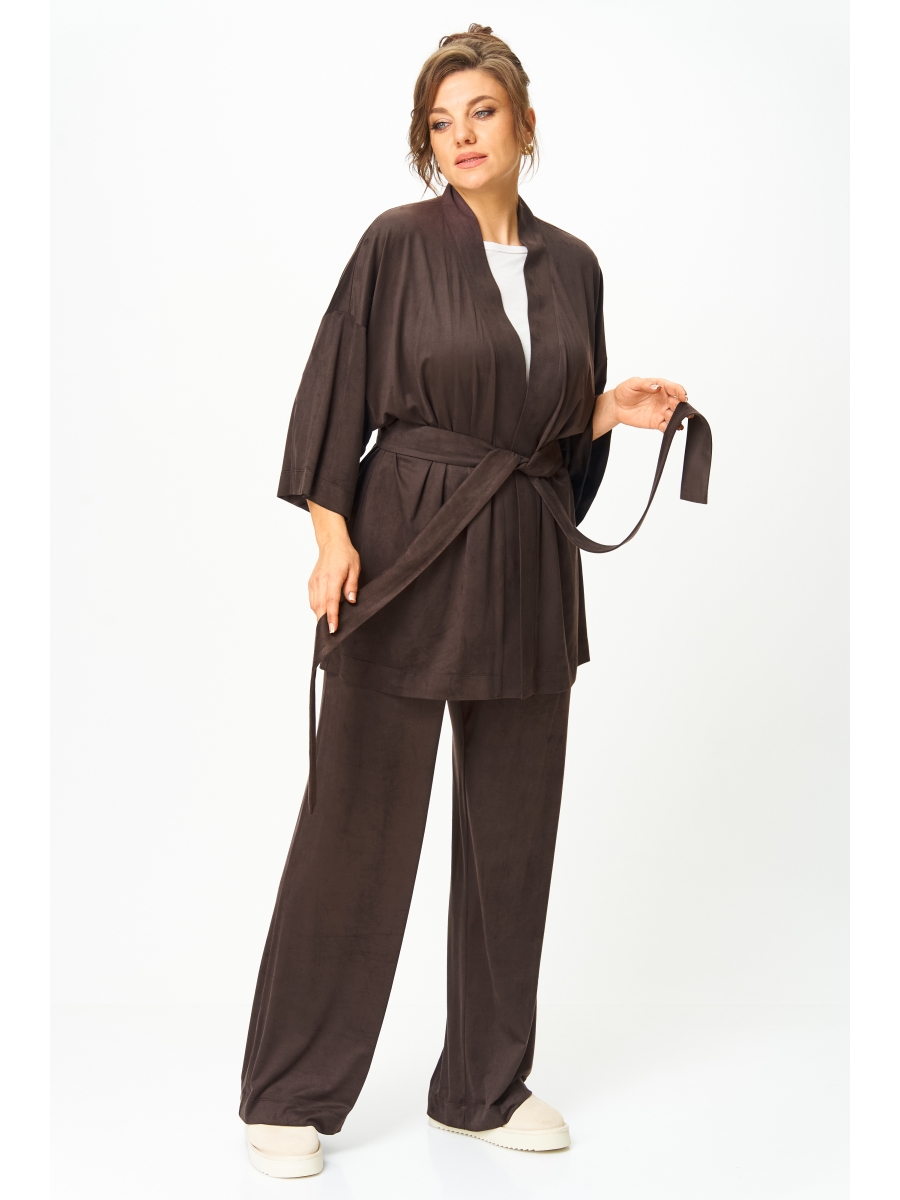 Оформить заказ →Костюм женский из текстильного полотна состоящий из жакета и брюк . Жакет-кимоно свободного силуэта без подкладки со съёмным поясом . Брюки с высокой посадкой на резинке с боковыми карманами .
