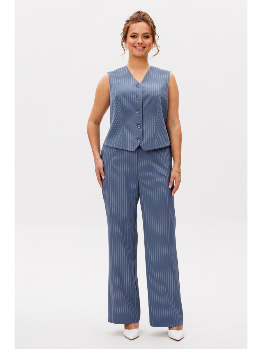 Костюм женский состоит из жилета и брюк, выполнен из костюмной ткани (тянется) в полоску.