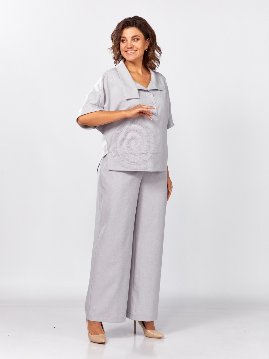 Костюм женский брючный из смесово-льняной ткани.