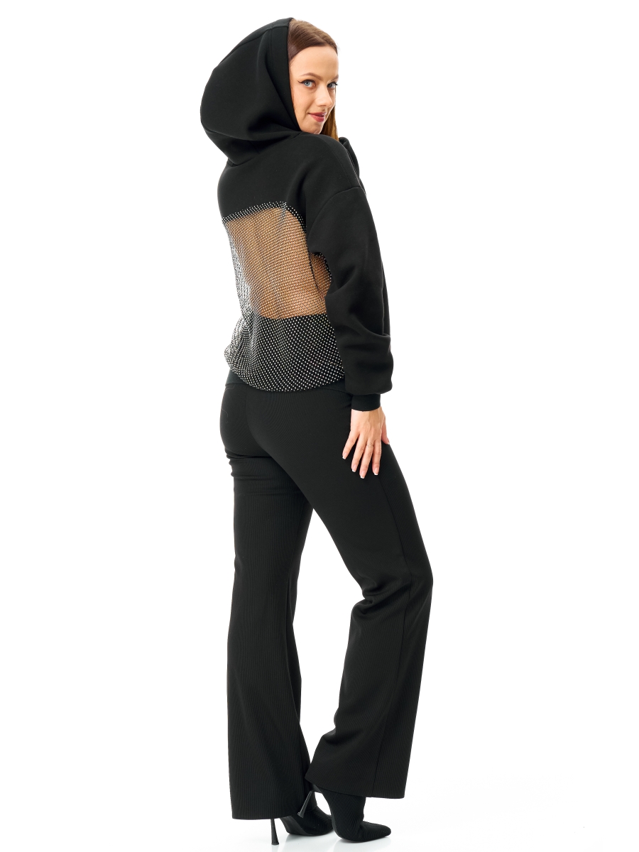 Сочетание нежности и дерзости в одной модели. Это не просто худи, а настоящий арт-объект для вашего гардероба. Мягкий и уютный крой спереди идеально контрастирует с соблазнительной спинкой, украшенной сеткой со стразами.