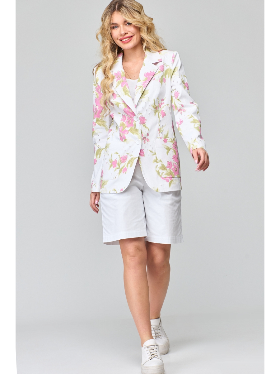 Эффектный женский комплект из классического жакета с шортами-бермудами - идеальный вариант для жаркой погоды. Комплект изготовлен из хлопковой ткани. Можно сочетать как с кроссовками, а также обувью на каблуке.