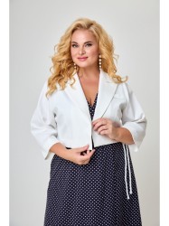 Жакет-болеро укороченный, на подкладке, длиной до линии талии. Рукав 3/4, втачной. Горловина обработана воротником с лацконом. По переду слева декоративная листочка.
