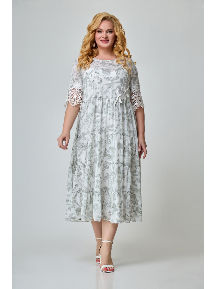 Верхнее платье свободного кроя, с оборками из нежного струящегося шифона, станет изюминкой модного гардероба. Линия талии слегка завышена, с нагрудными вытачками. Рукав втачной короткий. По низу декорирован кружевом. По переду платья аппликация.