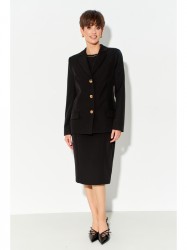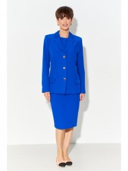 Классический женский костюм полуприлегающего силуэта, состоящий из платья и жакета, выполнен из костюмной ткани с содержанием вискозы.