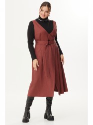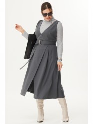 Сарафан полуприлегающего силуэта с эффектом запаха. Выполнен из мягкой костюмной ткани. Застежка по спинке на потайную молнию. Дополнен съемным поясом, выполненным из основной ткани.