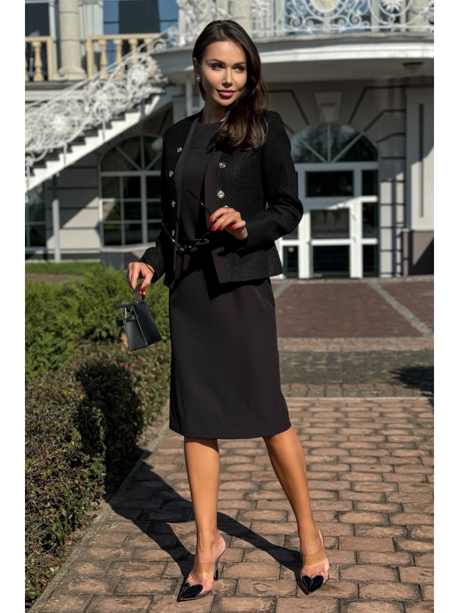 Этот изящный черный костюм — идеальный выбор для уверенной и стильной женщины.