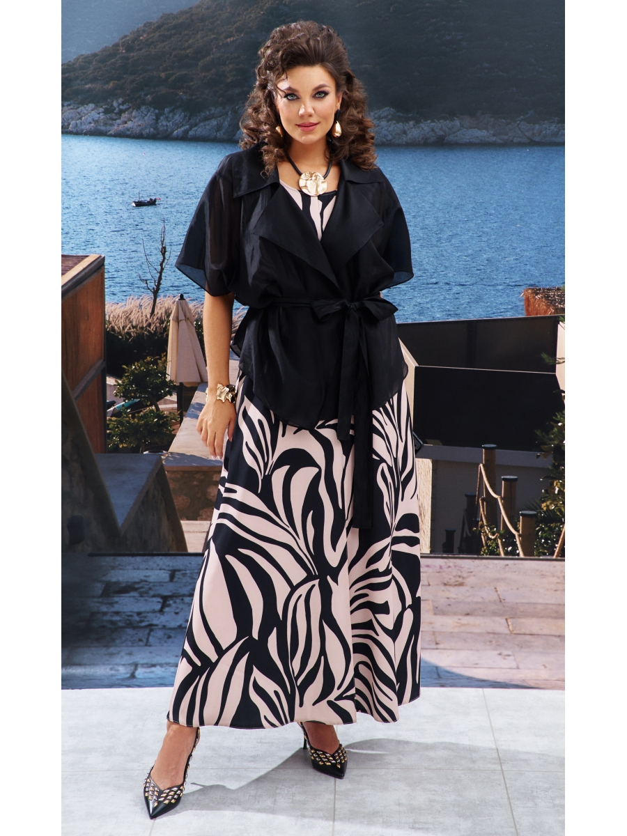 Стильный женский комплект, состоящий из полупрозрачного жакета-тренч и платья с анималистическим принтом - идеальный выбор для летнего отдыха!