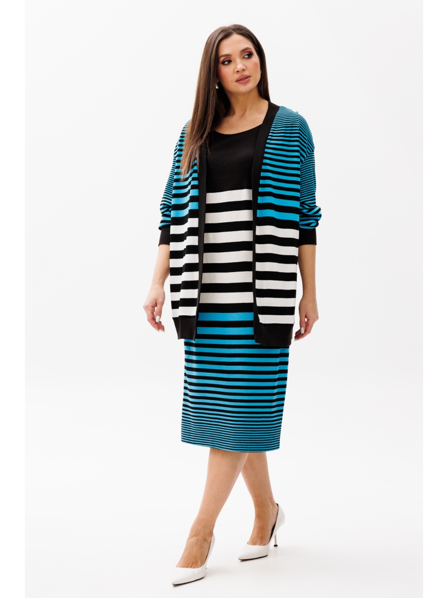Вместо классического тандема с юбкой, выбираем более расслабленный с платьем и кардиганом, плюс оригинальная многоцветная полоска, и не скучный современный "look" готов.