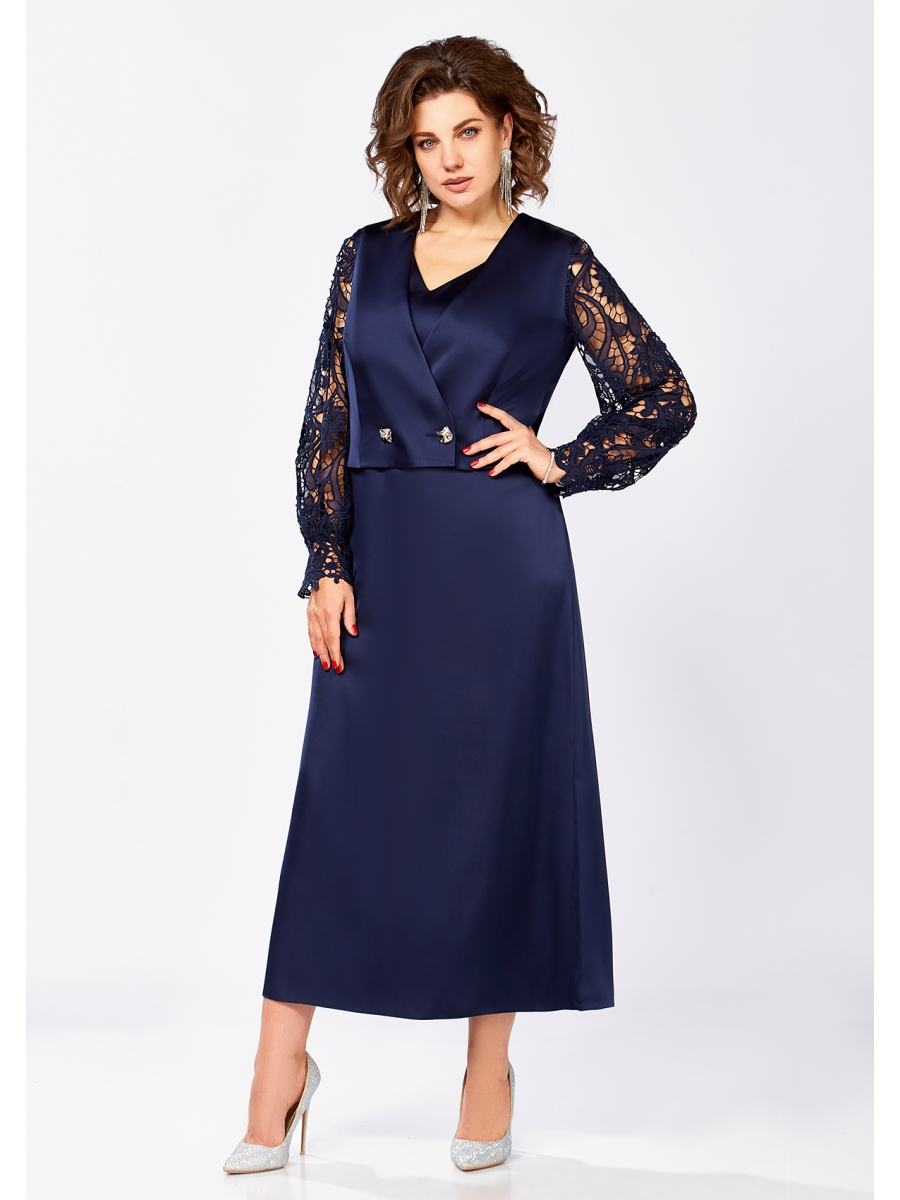 Нарядный комплект, состоит из платья и жакета, выполненных из атласа и кружева.