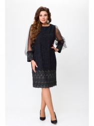 Нарядный женский комплект, состоящий из двух предметов- платья и блузы. И платье, и блузу можно комплектовать с другими изделиями из Вашего гардероба. Платье полуприлегающего силуэта без рукава из тонкого трикотажа с люрексом в цвет ткани. Горловина обработана плетёной отделочной тесьмой шириной 1см.По переду нагрудные вытачки, по спинке талиевые вытачки. Длина платья по спинке 100см.