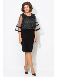 Нарядный женский комплект, состоящий из двух предметов- платья и блузы. И платье, и блузу можно комплектовать с другими изделиями из Вашего гардероба. Платье полуприлегающего силуэта без рукава из тонкого трикотажа с люрексом в цвет ткани. Горловина обработана плетёной отделочной тесьмой шириной 1см.По переду нагрудные вытачки, по спинке талиевые вытачки. Длина платья по спинке 100см.