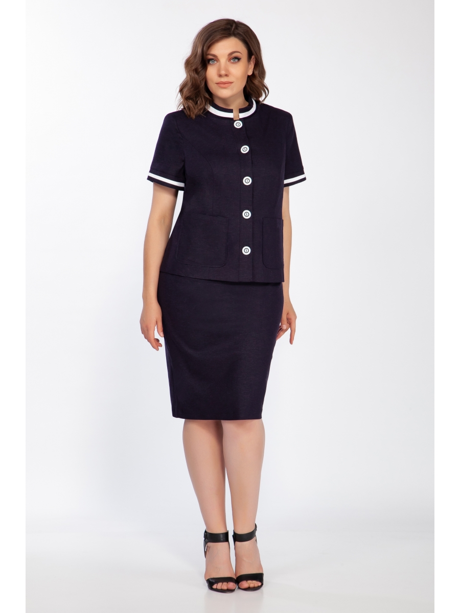 Жакет полуприлегающего силуэта из натурального льняного полотна, по переду накладные функциональные карманы; рукава втачные с отрезной манжетой, воротник - стойка, застежка на петли и пуговицы; внутренние швы жакета окантованы хлопковой тканью; декор по воротнику и манжетам из ткани контрастного цвета.