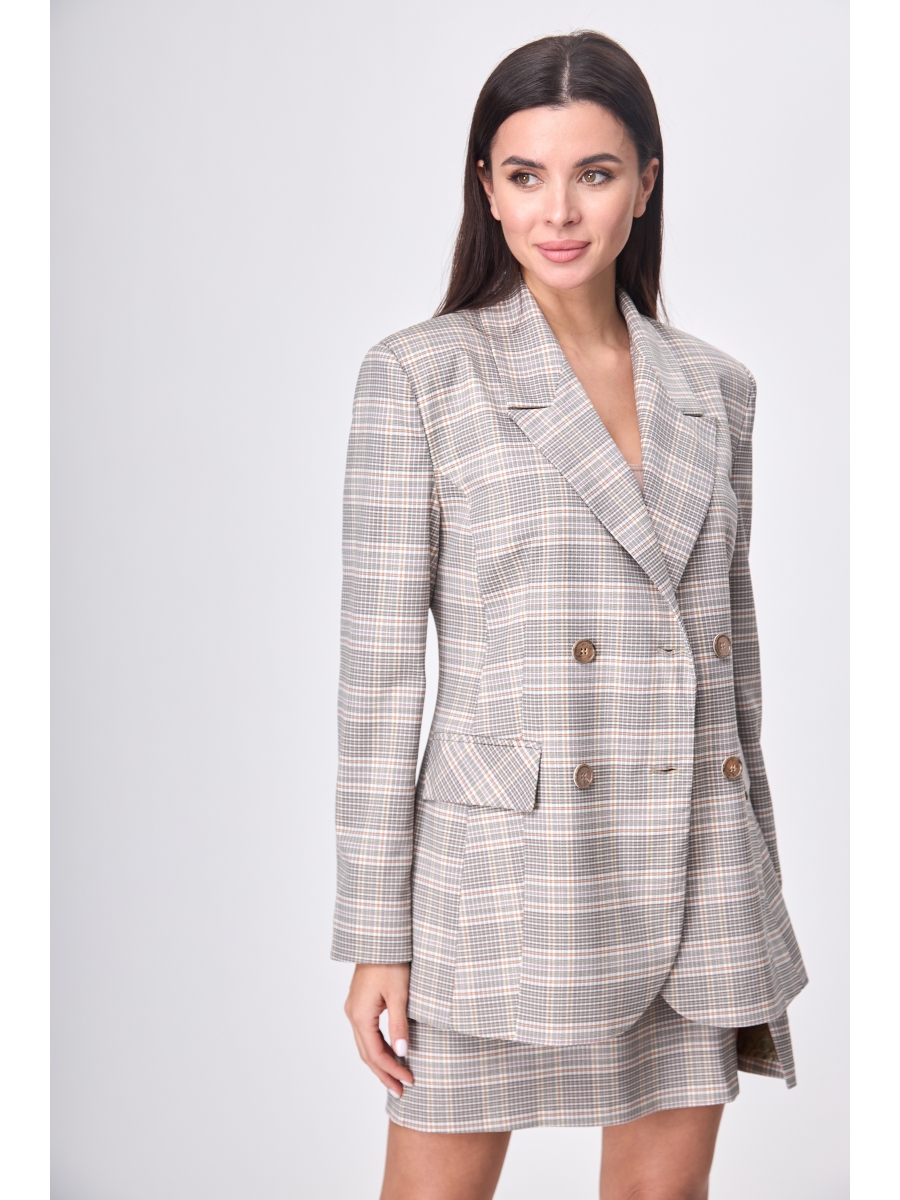 Выполнен из смесовой ткани с принтом «в клетку ».
