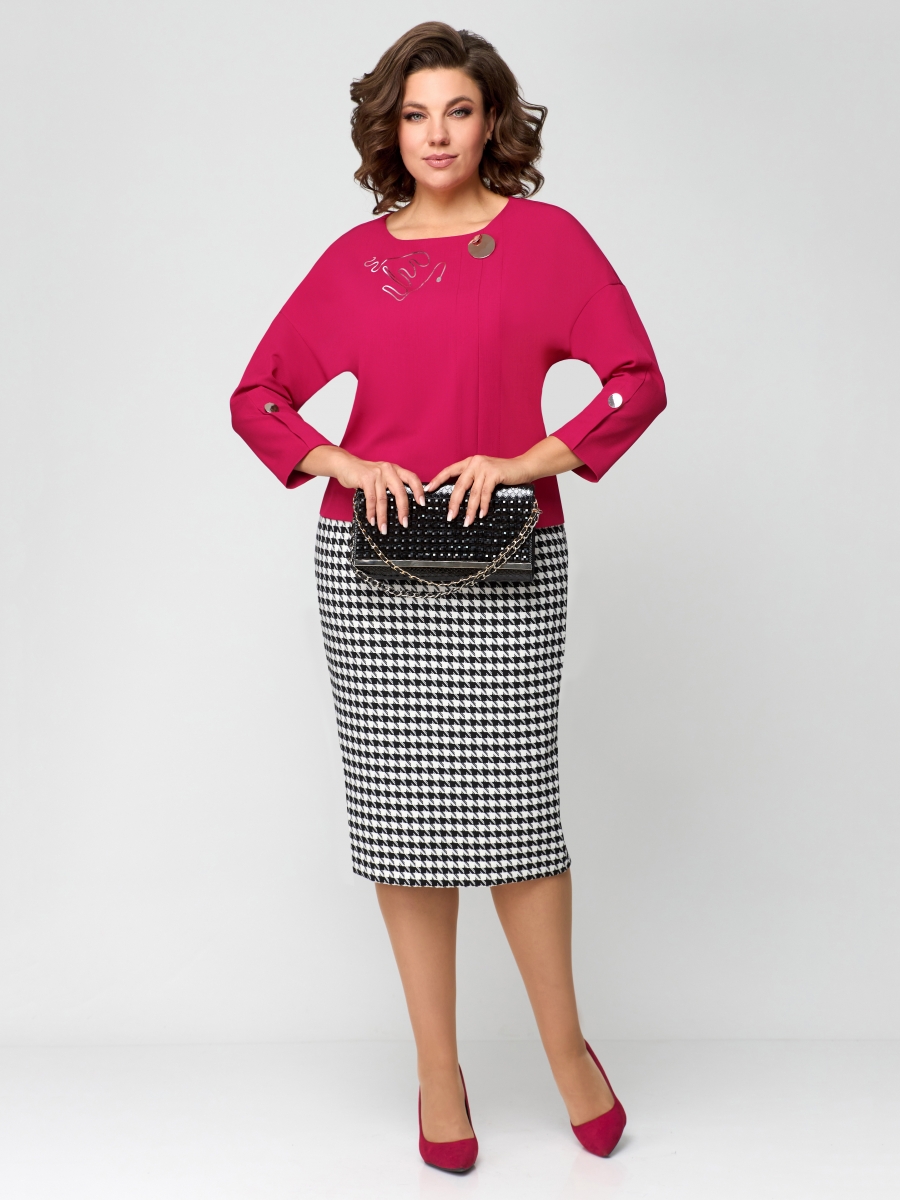 Юбочный костюм 1157 малиновый, черно-белый, МишельСтиль – купить с доставкой в Нижнем Новгороде на nizhny-novgorod.belpodium.ru
