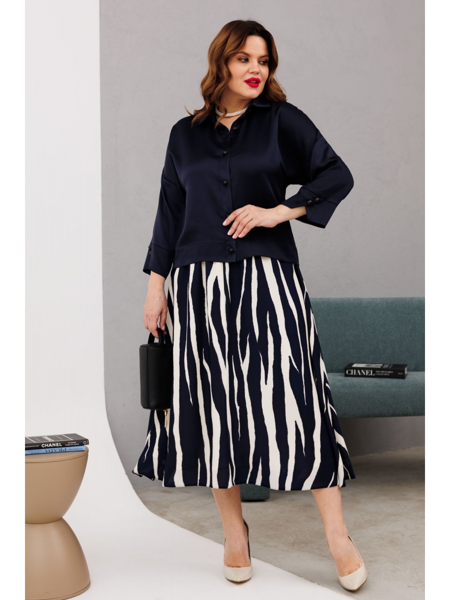 Юбочный костюм артикул: 1196 синий/молочный от Anastasia - вид 1