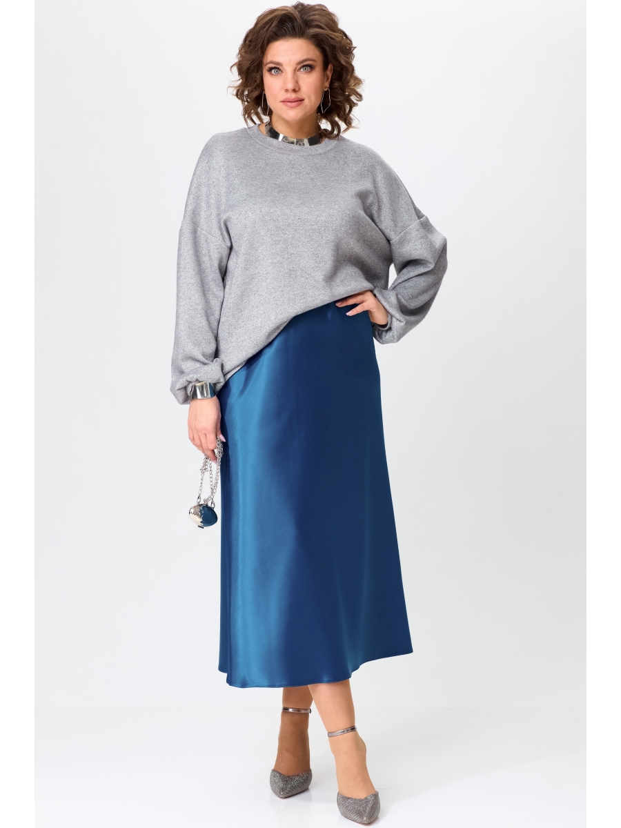 Модный женский комплект из атласной юбки и свободного джемпера с люрексом — это стильное и комфортное решение для создания как повседневных, так и вечерних образов.