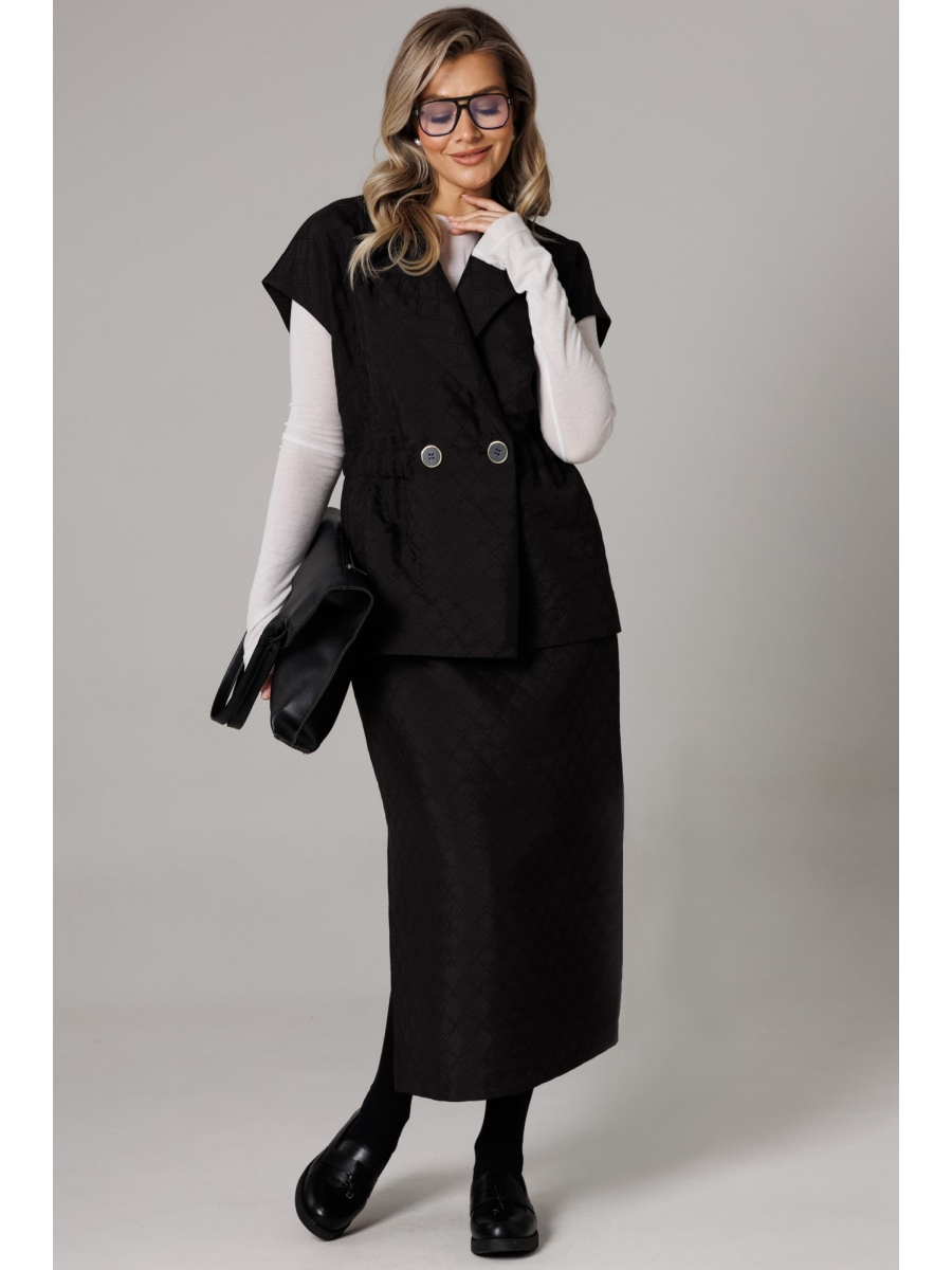 Костюм женский 2-х предметный (жилет, юбка) из стеганной ткани станет отличным дополнением к Вашему гардеробу.