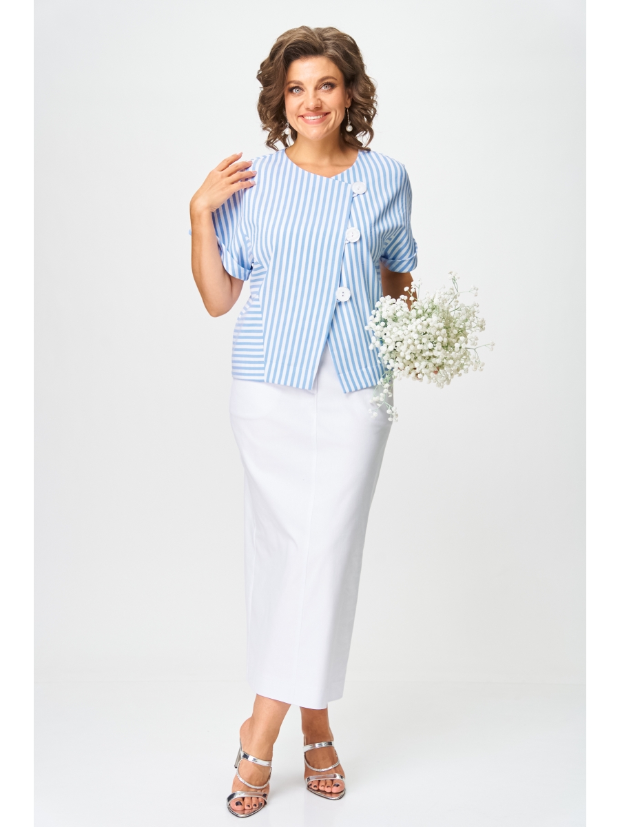 Юбочный костюм артикул: 1422 белый, полоска от Мишель Шик - вид 2