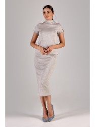 Комплект из мягкого трикотажного полотна с люрексовой нитью, которая придает небольшой блеск. Комплект состоит из джемпера и юбки полуприлегающего силуэта.