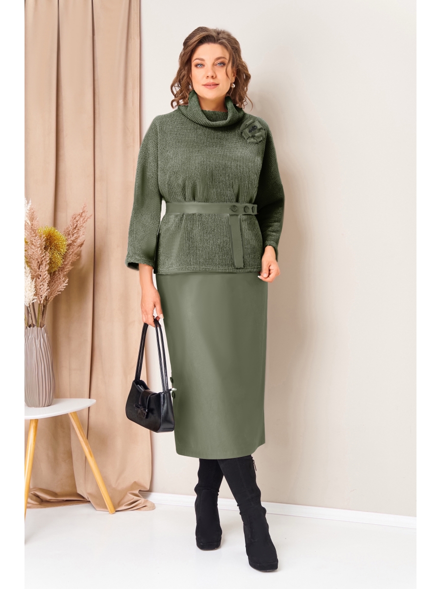 Изысканный комплект из трикотажного джемпера и юбки из искусственной кожи.
